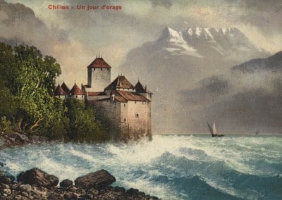 Le château, le lac Léman et les Dents-du-Midi constituent une triade au charme mystérieux. Jean-Jacques Rousseau, Victor Hugo, Alexandre Dumas, Gustave Courbet ou encore lord Byron voient dans ce paysage les composants à la création des plus belles œuvres de la période romantique du XIXe siècle. Dans son poème, le prisonnier de Chillon, rédigé en 1816, lord Byron écrit: